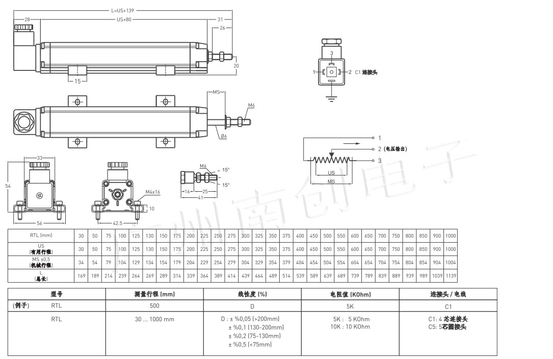 電阻式線性位移傳感器帶內(nèi)置轉(zhuǎn)換模塊系列:ELPT、ELPH、ELPC、ELPMdTo廣州南創(chuàng)電子科技有限公司