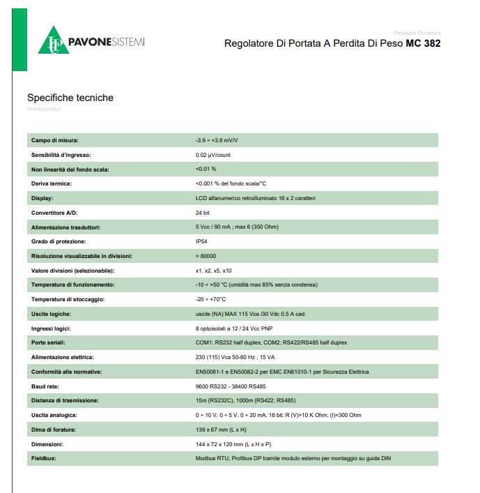 Pavone Sistemi稱重儀表相關(guān)型號: