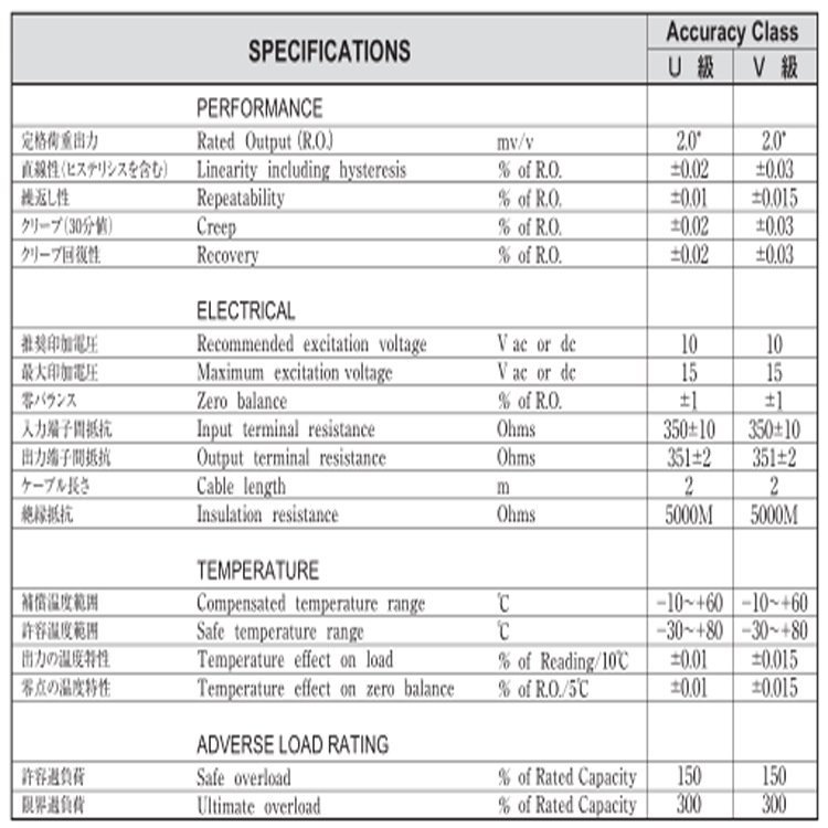 cuL廣州南創(chuàng)電子科技有限公司cuL廣州南創(chuàng)電子科技有限公司UB2S-300kg稱重傳感器Yamato技術(shù)參數(shù):cuL廣州南創(chuàng)電子科技有限公司