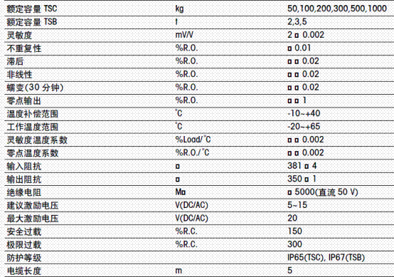 托利多0745A-2.2稱(chēng)重傳感器技術(shù)指標(biāo):