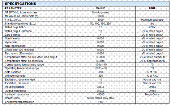 美國世銓Celtron MBB系列稱重傳感器所有量程如下: nf7廣州南創(chuàng)電子科技有限公司