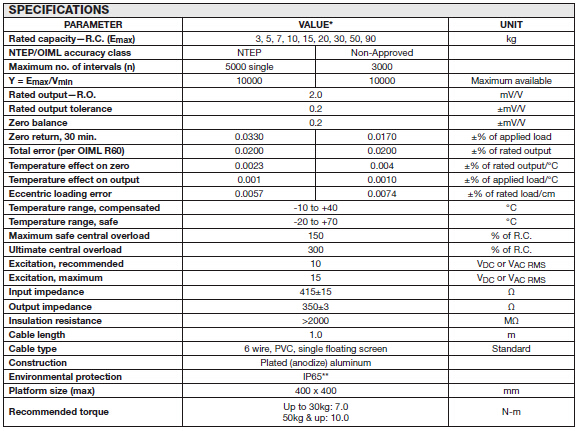 美國tedea稱重傳感器 1015系列稱重傳感器所有量程如下:IBs廣州南創(chuàng)電子科技有限公司