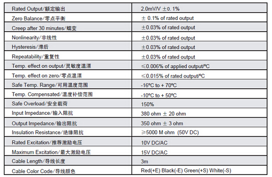美國傳力Transcell BSH系列稱重傳感器所有量程如下: Wnq廣州南創(chuàng)電子科技有限公司