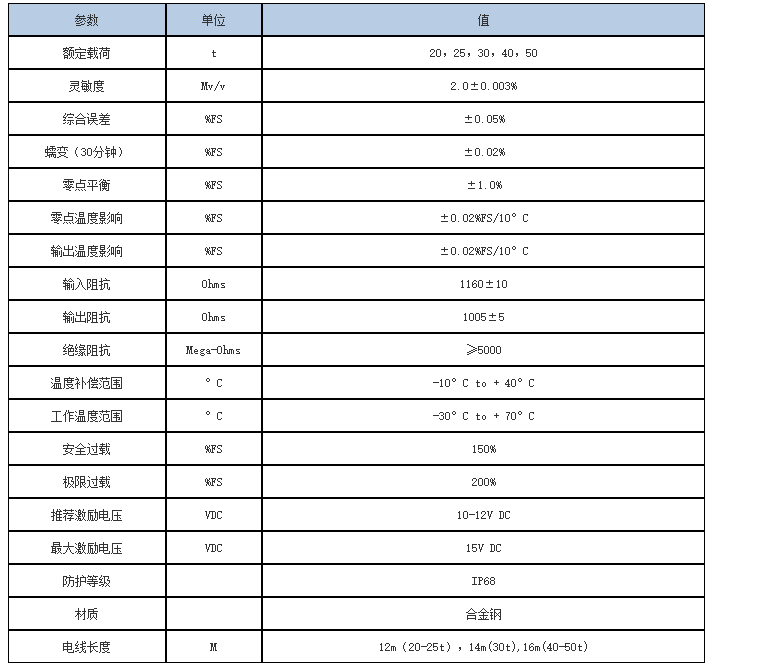 數(shù)字型柱式稱(chēng)重傳感器技術(shù)參數(shù):oAz廣州南創(chuàng)電子科技有限公司