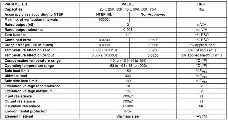 33554:  65083S-4k-5100 4000lb 20ft SENTRS 2mV/V 350 OHM NTEP Class III 5m  HS WS IP67FSP廣州南創(chuàng)電子科技有限公司