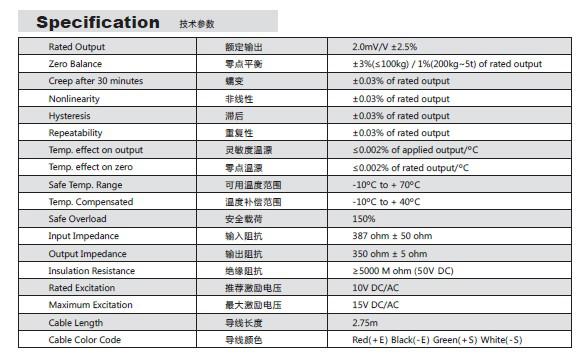 Transcell CR-5T稱重傳感器主要特性:LrD廣州南創(chuàng)電子科技有限公司