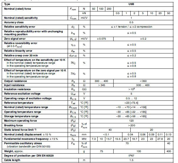 德國(guó)HBM 稱(chēng)重傳感器U9B/20KN技術(shù)指標(biāo):7lh廣州南創(chuàng)電子科技有限公司