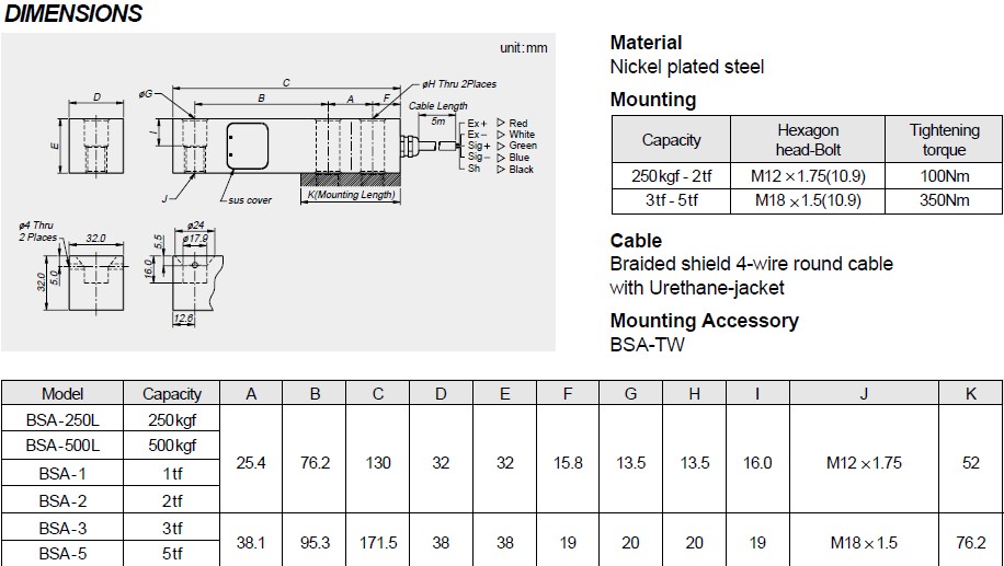 【BSA-500L】_韓國CAS BSA-500L負荷傳感器_BSA-500L稱重傳感器