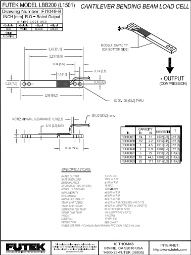 美國(guó)FUTEK力傳感器LBB200規(guī)格圖:gAN廣州南創(chuàng)電子科技有限公司