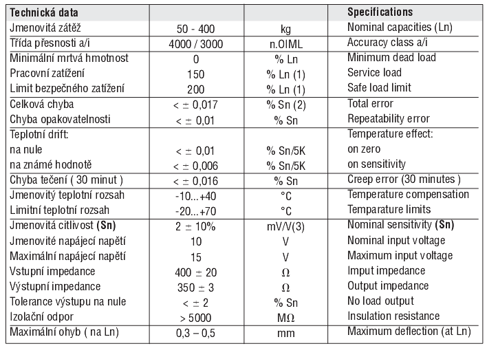 標稱靈敏度(Sn): 2± 10% mV/V額定輸入電壓: 10 V最大輸入電壓: 15 V輸入阻抗: 400 ± 200 Ohm輸出阻抗: 350 ± 30 Ohm空載輸出<±2%Sn絕緣電阻 > 5000 MOhm靈敏度溫差影響 < ±0.006%Sn/5K蠕變誤差(30分鐘)<±0.016 %Sn溫度補償: -10 to +40 °C溫度范圍: -20 to +70 °C最大偏差(at Ln):0.3 - 0.5mm bgx廣州南創(chuàng)電子科技有限公司