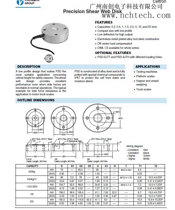 美國(guó)Celtron PSD-500kg稱重傳感器系列相關(guān)型號(hào)詳細(xì)資料:2Ci廣州南創(chuàng)電子科技有限公司