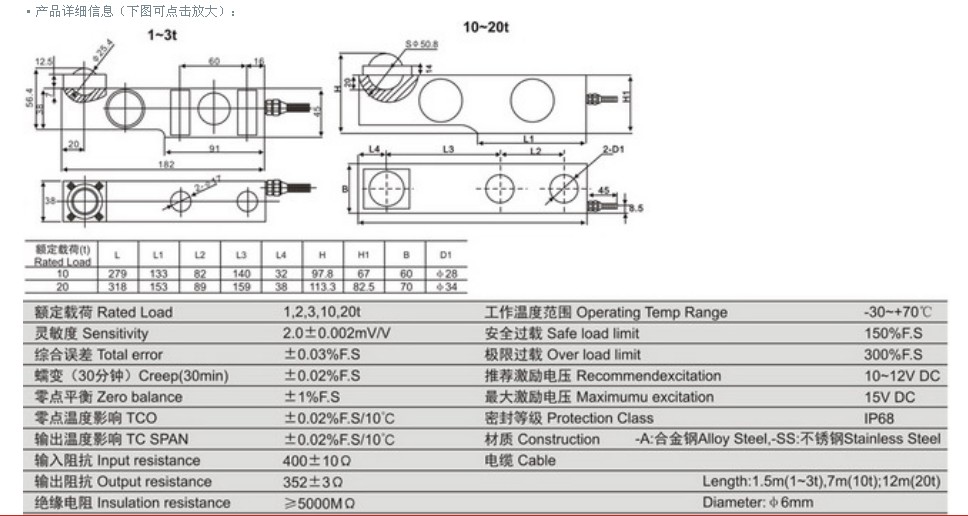 美國柯力SB -A- 7.5T傳感器蠕變( % FS/30min ) ≤ ± 0.060 ≤ ± 0.017在中小電路的 DC ? 100KHZ之間的精確度nss廣州南創(chuàng)電子科技有限公司