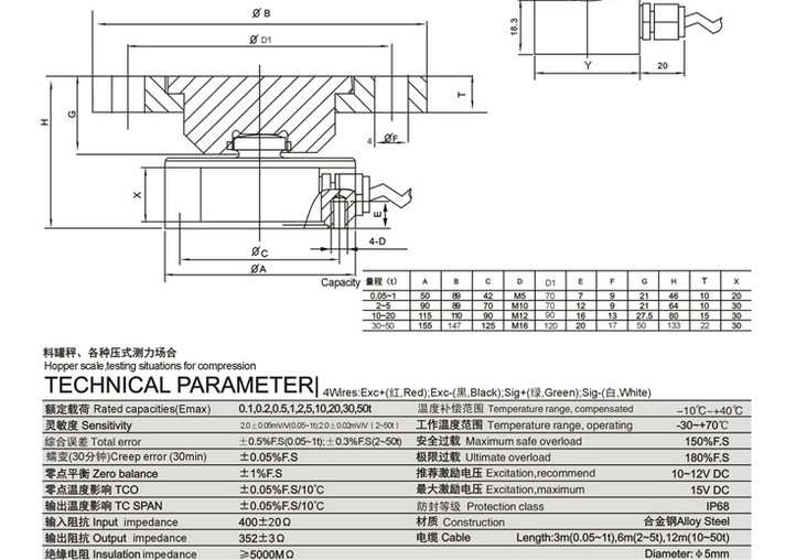 柯力YBSC-A-50t傳感器接線類型: 五、八線模擬電阻式接線,接線材質(zhì):  316L 聚四氟乙烯 其它特珠材質(zhì)Xc9廣州南創(chuàng)電子科技有限公司