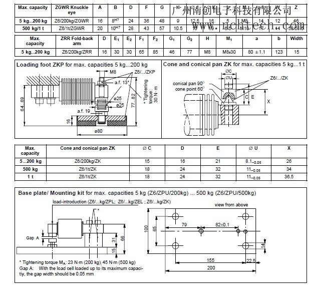 Z6FC4/200KG Z6FC4/500KG Z63AC3/50KG Z63AC3/100KG Z63AC3/200KG47z廣州南創(chuàng)電子科技有限公司