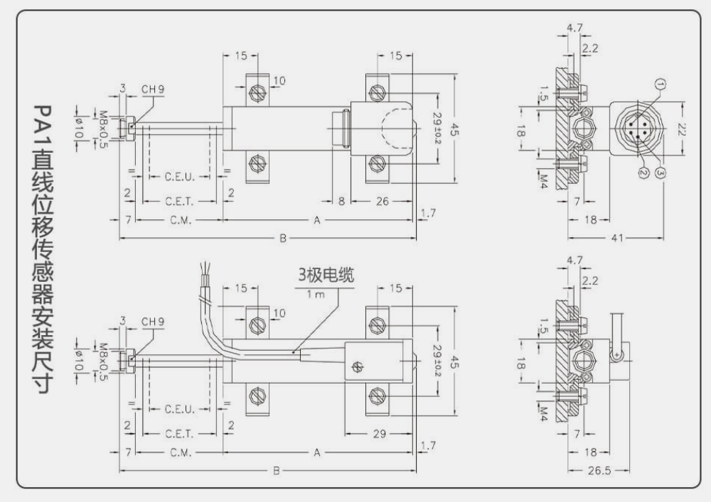 杰佛倫gefran電子尺PA1-F-100-S02M-XL0381 PA1-F-125-S02M-XL0202尺寸圖:DTl廣州南創(chuàng)電子科技有限公司