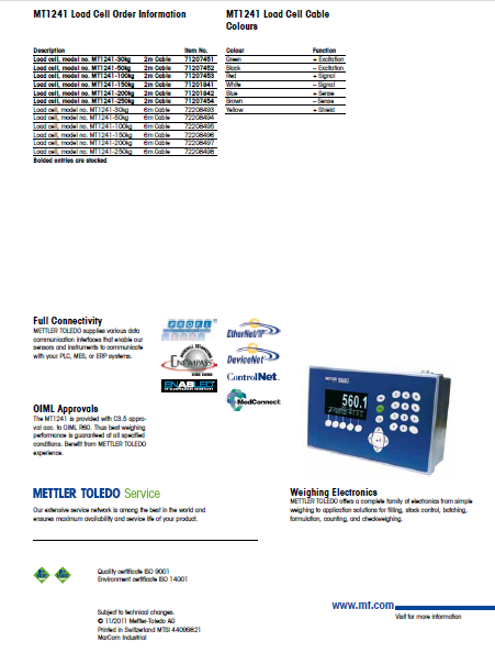 瑞士梅特勒托利多mt1241-100kg稱重傳感器產(chǎn)品技術(shù)參數(shù)圖:h5S廣州南創(chuàng)電子科技有限公司