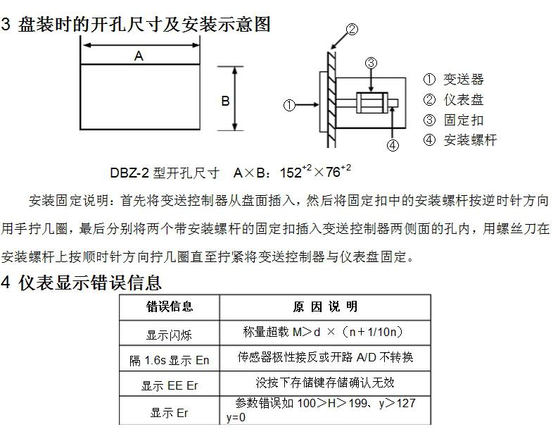1.前后面板布置、安裝及接線 DBZ-2型稱(chēng)重變送控制器盤(pán)裝式前后面板布置示意圖