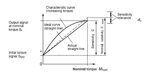 靈敏度C被表示為特性曲線的斜率。特性曲線為連接未加載的扭矩傳感器的輸出信號SM0和額定扭矩輸出信號Sn之間的直線。簡單表達(dá)式為y29廣州南創(chuàng)電子科技有限公司