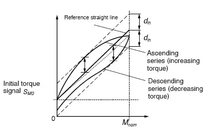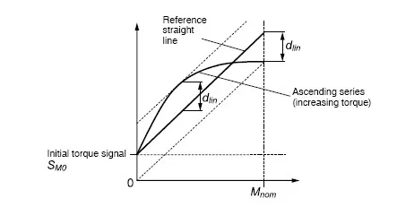 為了確定線性誤差,負(fù)載需要從零增加到額定扭矩并進(jìn)行了一系列測量?;鶞?zhǔn)直線是穿過初始點(diǎn)的最佳擬合直線。規(guī)定的線性偏差是實(shí)際輸出信號與參考直線的最大偏差。也可以描述為公差帶(偏離直線的上下偏差量之和)寬度的一半,該寬度與基準(zhǔn)直線對稱。y29廣州南創(chuàng)電子科技有限公司