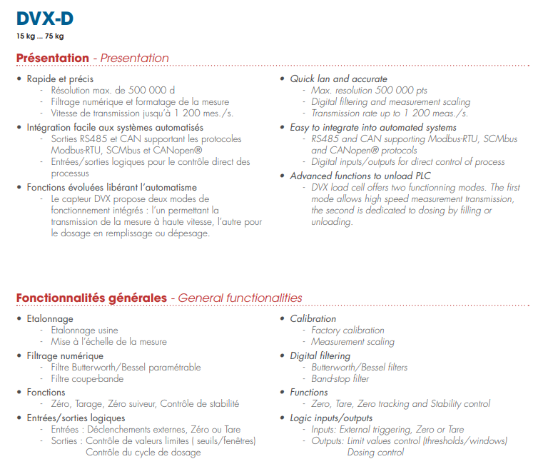 法國Scaime稱重傳感器DVX-D-7.5KG產(chǎn)品特性:YMf廣州南創(chuàng)電子科技有限公司