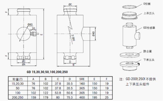 GD-250T GD搖柱式稱(chēng)重傳感器,容量250T,20M電纜Kg0廣州南創(chuàng)電子科技有限公司