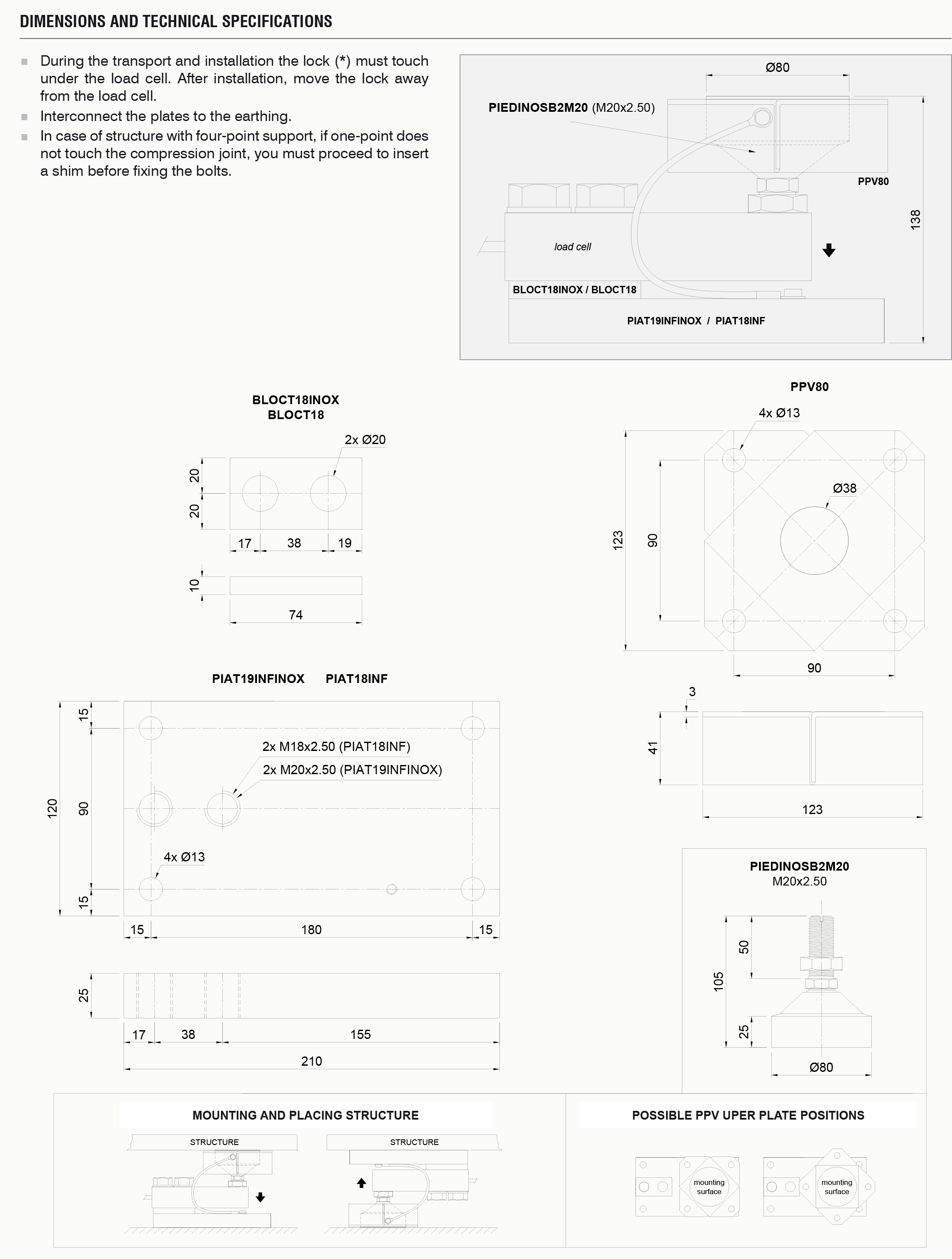 Mounting kit designed for rollers, platforms, tanks, hoppers, etc..; provided with a stainless steel self-centring joint foot, adjustable height, against lateral forces and anti-tilt to compensate for misalignment of the support plates.Max static load 5000 kg.96u廣州南創(chuàng)電子科技有限公司