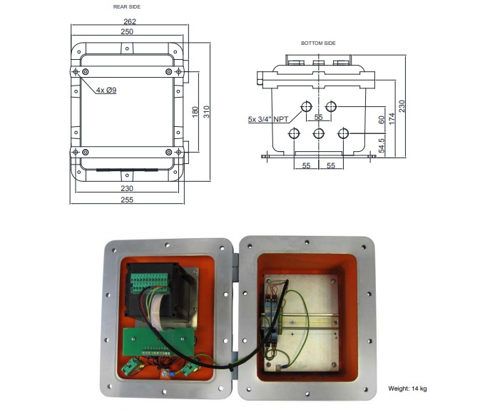 防爆箱,已通過(guò)ATEX II 2(1)GD認(rèn)證,配有耐熱透明鋼化玻璃窗和5個(gè)外部按鈕,其功能與W200鍵盤相同Nvu廣州南創(chuàng)電子科技有限公司