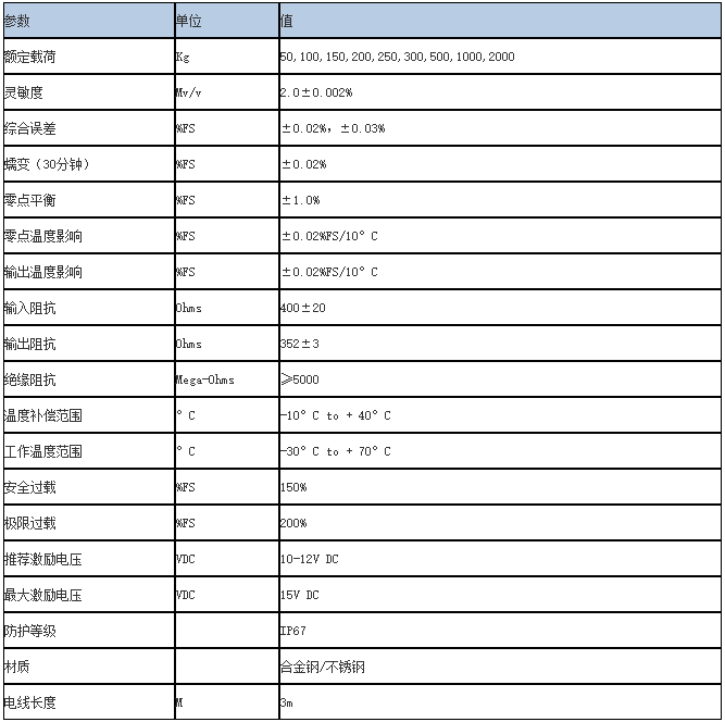 柯力稱重傳感器量程有50,100,150,200,250,300,500,1000,2000(Kg)Uhd廣州南創(chuàng)電子科技有限公司