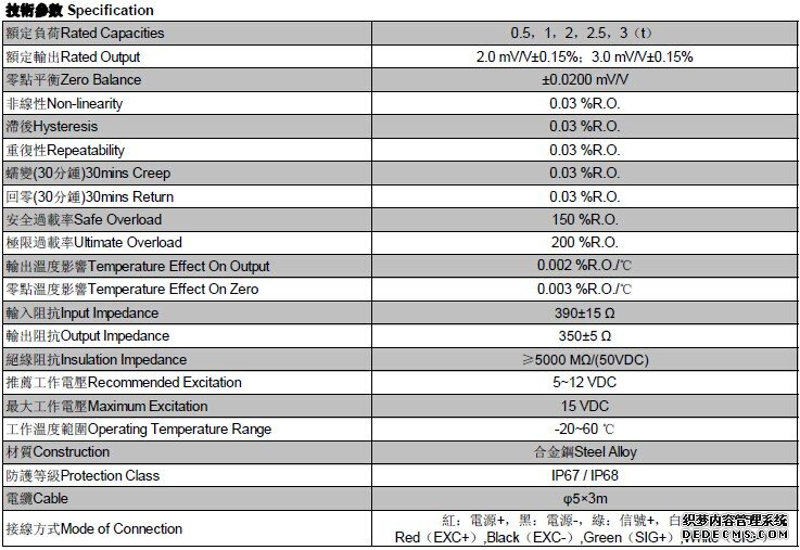 額定輸出Rated Output 2.0 mV/V±0.15%;3.0 mV/V±0.15%zFL廣州南創(chuàng)電子科技有限公司