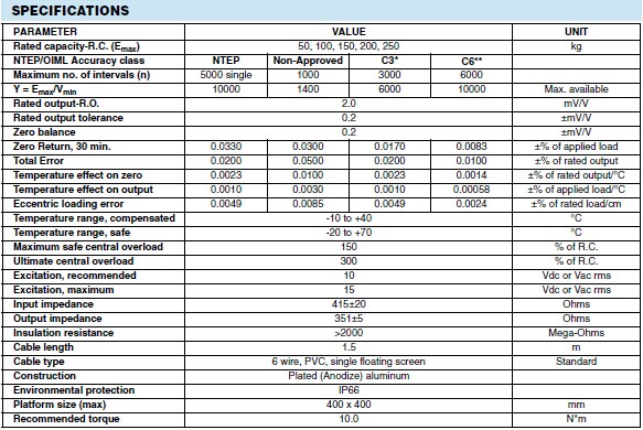 這種高精度稱重傳感器符合OIML R60類C6批準。對于危險