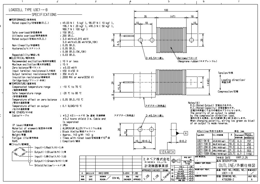 產(chǎn)品型號:U3C1-10K傳感器 日本NMB U3C1-20K稱重傳感器