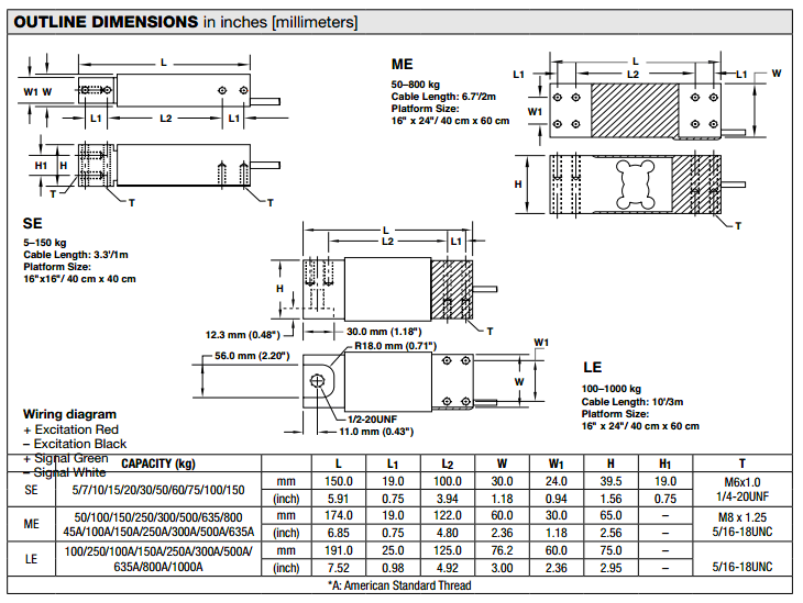 美國威世世銓Celtron LOC稱重傳感器系列所有量程如下:   gJN廣州南創(chuàng)電子科技有限公司