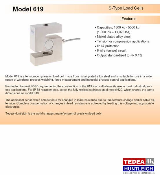 美國Tedea-Huntleigh 619-2000kg稱重傳感器,特迪亞619-2T,TEDEA 619-3T傳感器S型稱重傳感器所有型號:0t5廣州南創(chuàng)電子科技有限公司