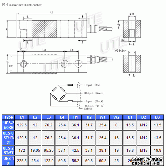 臺(tái)灣UTE UES系列稱重傳感器產(chǎn)品參數(shù)圖:gHv廣州南創(chuàng)電子科技有限公司