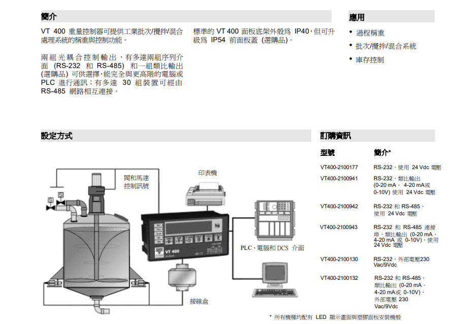 美國REVERE TRANSDUCERS VT400稱重儀表更多產(chǎn)品詳細資料請點擊:美國VISHAY REVERE TRANSDUCERS,進入頁面可查找vishay Revere稱重儀表型號、vishay Revere VT400電子稱重儀表技術(shù)參數(shù)選型資料,以及威世Revere稱重顯示控制器具體安裝技術(shù)指導(dǎo)信息。nPM廣州南創(chuàng)電子科技有限公司