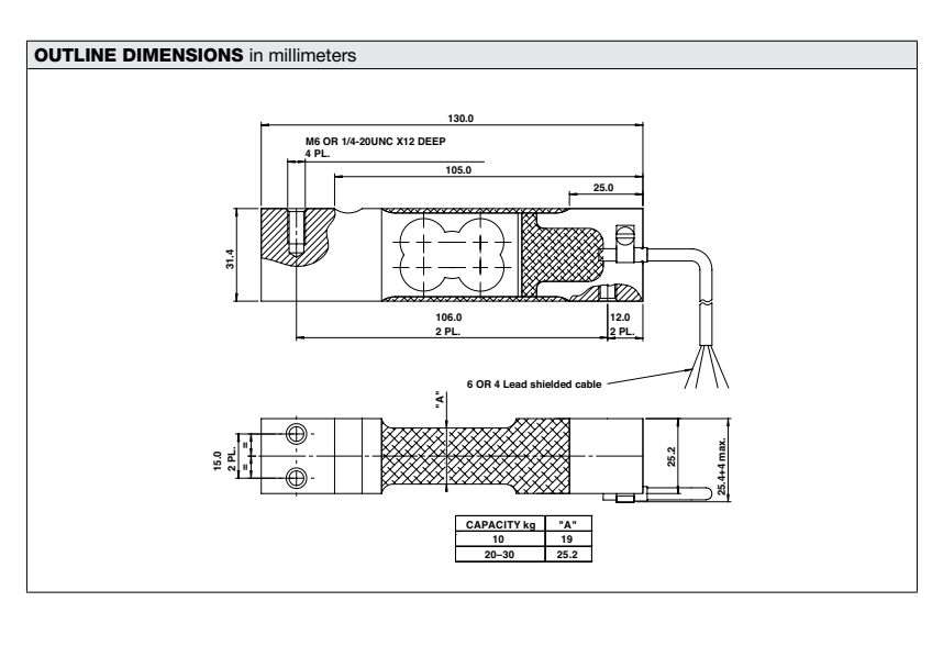特迪亞tedea稱重傳感器1033-30KG技術參數(shù)圖:XYF廣州南創(chuàng)電子科技有限公司