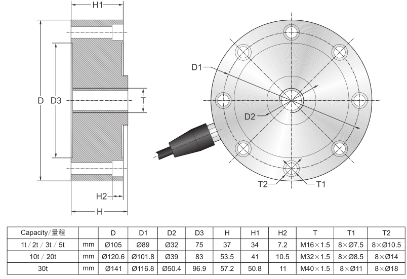 美國傳力DBSL-TJ-1t稱重傳感器產(chǎn)品技術(shù)參數(shù):