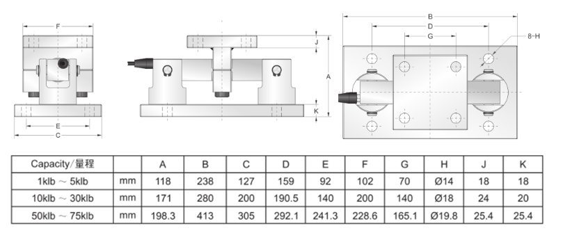 美國傳力Transcell稱重模塊DBS-1K MODULE技術(shù)參數(shù)圖: