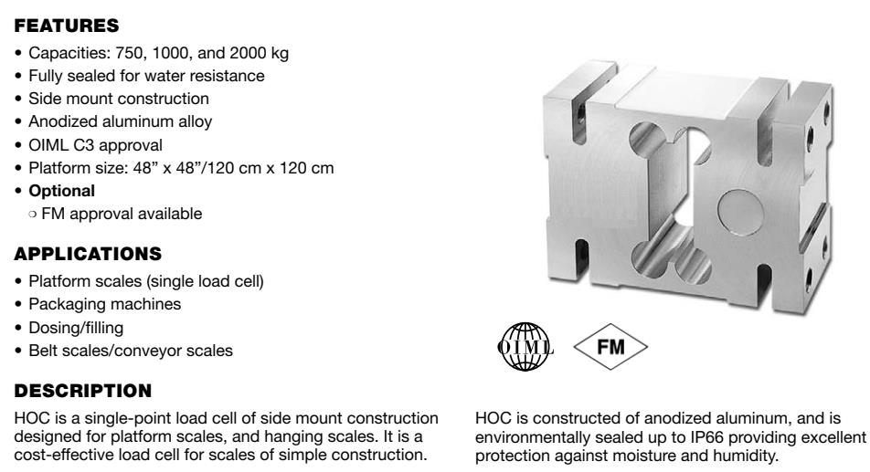 美國(guó)世銓Celtron HOC系列稱(chēng)重傳感器相關(guān)量程如下:oSU廣州南創(chuàng)電子科技有限公司