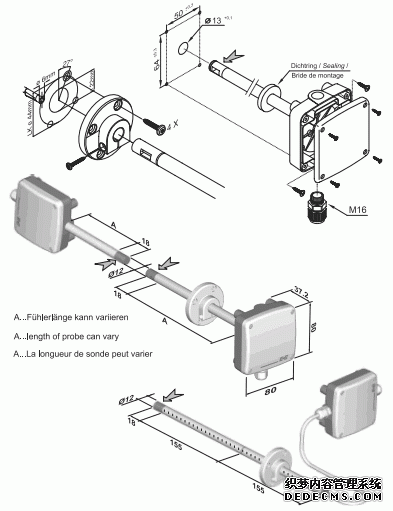 奧地利E+E EE66系列風速變送器產品尺寸圖:ZZy廣州南創(chuàng)電子科技有限公司