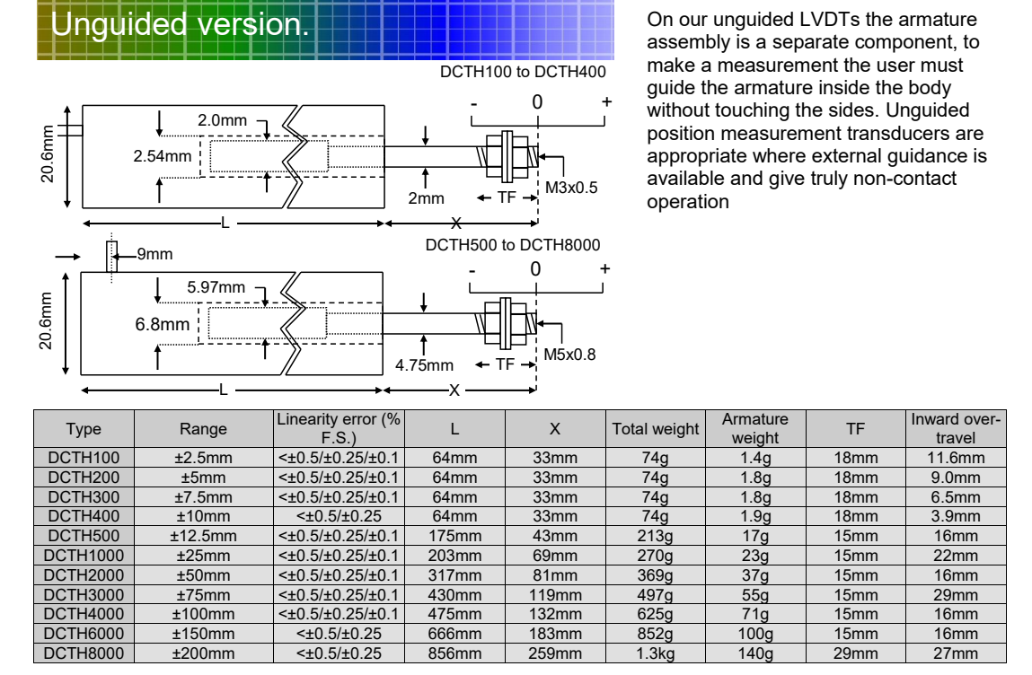 英國RDP位移傳感器 DCTH系列位移傳感器所有量程如下:lNb廣州南創(chuàng)電子科技有限公司